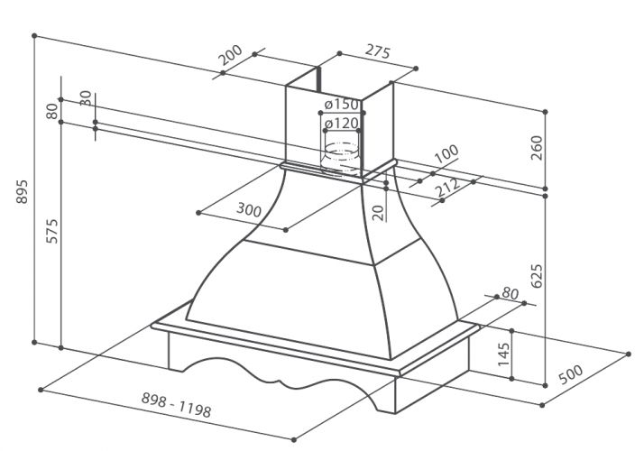 Определяющим параметром для размещения вытяжки на кухне является ширина ниши, куда предполагается ее установить. Следует учитывать, что размеры вытяжки должны соответствовать размерам рабочей поверхности, над которой она устанавливается. Вытяжка будет работать эффективно лишь при условии, что ее воздухоприемный зонт полностью закрывает плоскость плиты - тогда утечка загрязненного воздуха окажется минимальной. Если позволяет место, можно установить вытяжку несколько шире, чем рабочая поверхность плиты (например, для кухонной плиты шириной 60 см можно купить и вытяжку шириной 90 см). Но из-за экономии места большинство пользователей все же устанавливают вытяжки, по ширине равные плите.