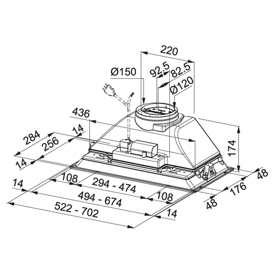 Встраиваемые вытяжки, как правило, работают в проточном режиме и требуют проводки воздуховода. Их главный плюс заключается том, что их можно почти полностью спрятать под столешницей или в кухонном шкафчике (см. "Тип встраивания"). Пользователю фактически остается видна только заборная часть вытяжки (то есть та, которая непосредственно поглощает воздух).