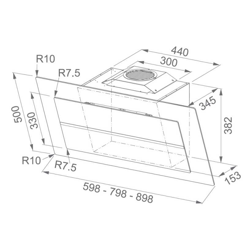 - Тип вытяжки — наклонная