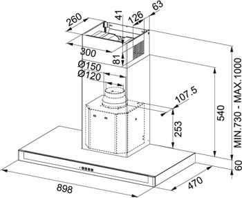 Определяющим параметром для размещения вытяжки на кухне является ширина ниши, куда предполагается ее установить. Следует учитывать, что размеры вытяжки должны соответствовать размерам рабочей поверхности, над которой она устанавливается. Вытяжка будет работать эффективно лишь при условии, что ее воздухоприемный зонт полностью закрывает плоскость плиты - тогда утечка загрязненного воздуха окажется минимальной. Если позволяет место, можно установить вытяжку несколько шире, чем рабочая поверхность плиты (например, для кухонной плиты шириной 60 см можно купить и вытяжку шириной 90 см). Но из-за экономии места большинство пользователей все же устанавливают вытяжки, по ширине равные плите.