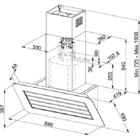 - Тип вытяжки — наклонная