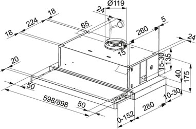 Встраиваемые вытяжки, как правило, работают в проточном режиме и требуют проводки воздуховода. Их главный плюс заключается том, что их можно почти полностью спрятать под столешницей или в кухонном шкафчике (см. "Тип встраивания"). Пользователю фактически остается видна только заборная часть вытяжки (то есть та, которая непосредственно поглощает воздух).