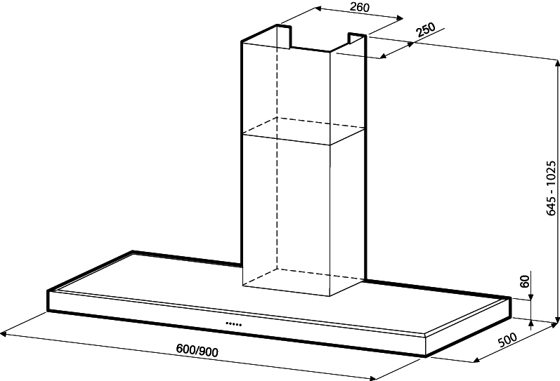 Ширина свободного пространства, куда планируется разместить вытяжку.