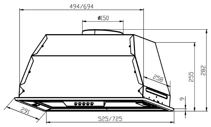 - Диаметр патрубка воздуховода, мм — 150