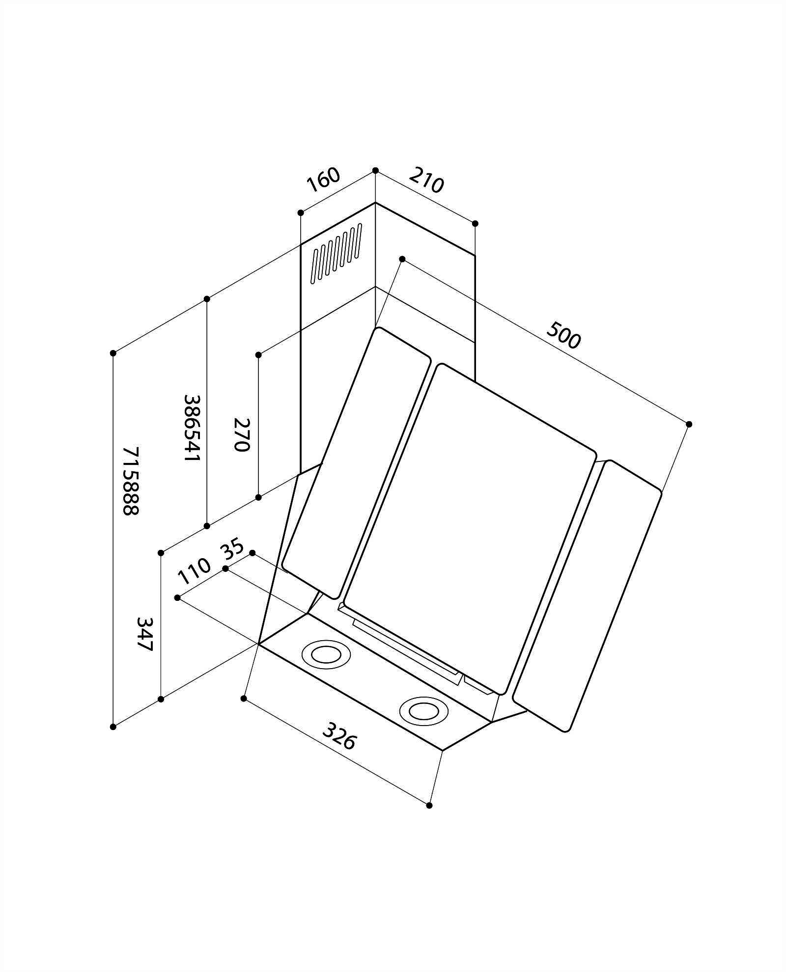 - Тип вытяжки — наклонная