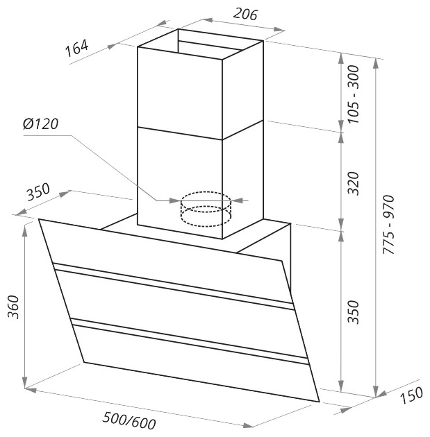 - Тип вытяжки — наклонная