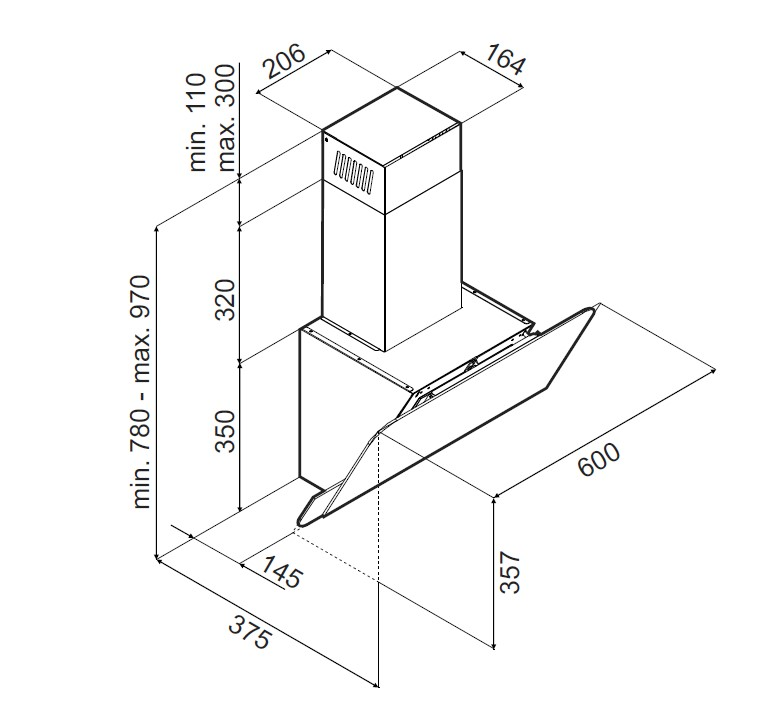- Тип вытяжки — наклонная