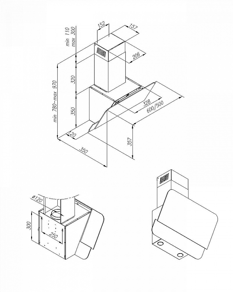 - Тип вытяжки — наклонная