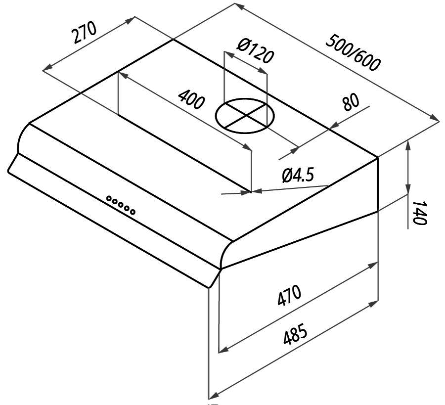 Стандартная вытяжка из высококлассной стали со стеклянным козырьком, встраивается над поверхностью плиты под шкафом по типу козырькового монтажа. Компактная, она идеально подойдет для стандартных кухонь не больших размеров (до 20 кв.м). Дизайн великолепно впишется в любой кухонный интерьер и благодаря высокому качеству материалов прослужит десятилетия.