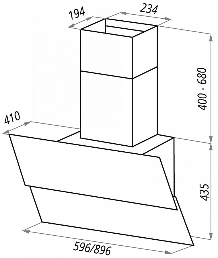 Наклонная вытяжка монтируется на стену над поверхностью плиты. На ваш выбор можно сделать отвод в вентиляционное отверстие или использовать сменный угольный фильтр.