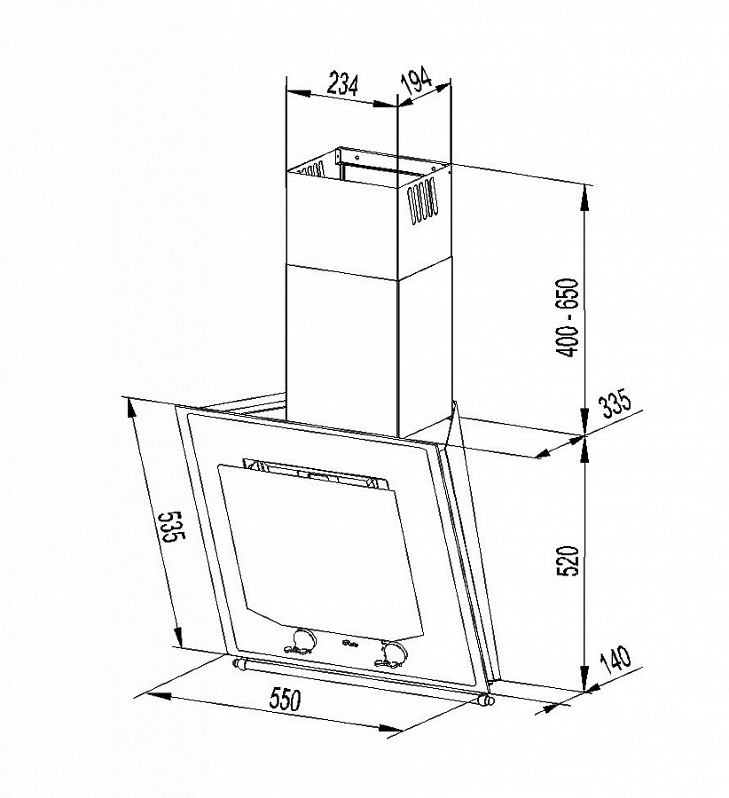 Наклонная вытяжка монтируется на стену над поверхностью плиты. На ваш выбор можно сделать отвод в вентиляционное отверстие или использовать сменный угольный фильтр.