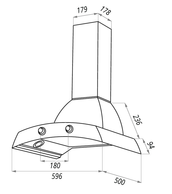 Наклонная вытяжка монтируется на стену над поверхностью плиты. На ваш выбор можно сделать отвод в вентиляционное отверстие или использовать сменный угольный фильтр.