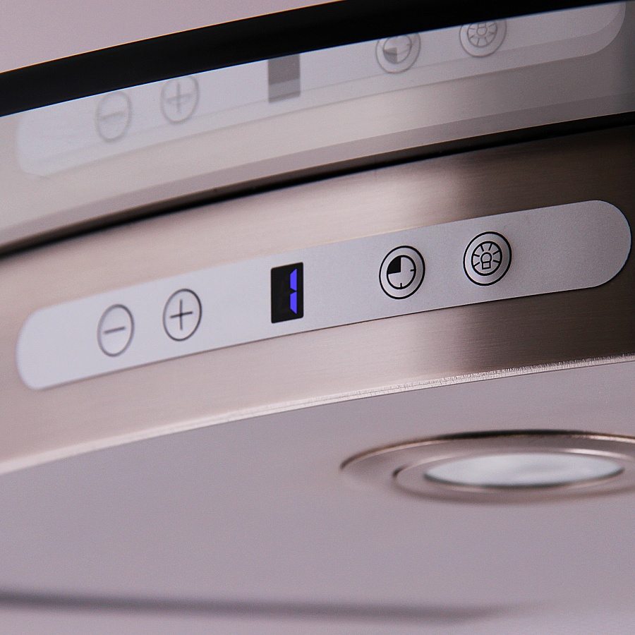Вытяжка оснащена электронным управлением с возможностью выбора любой из 4-х предложенных скоростей.