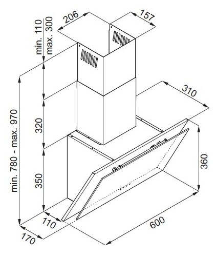 Наклонная вытяжка представляет собой плоскую вытяжку с рабочим пространством, расположенным под разными углами наклона.