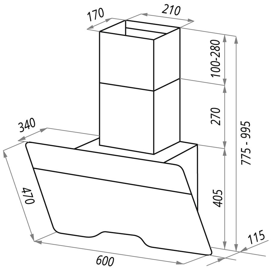 - Тип вытяжки — наклонная
