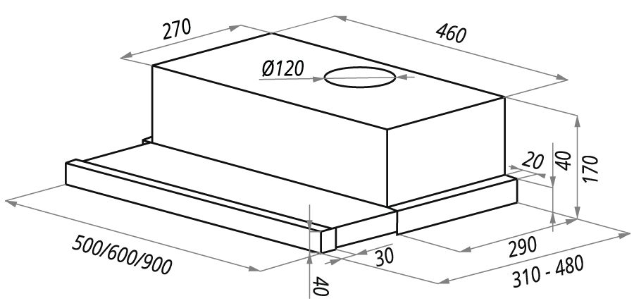 Определяющим параметром для размещения вытяжки на кухне является ширина ниши, куда предполагается ее установить. Следует учитывать, что размеры вытяжки должны соответствовать размерам рабочей поверхности, над которой она устанавливается. Вытяжка будет работать эффективно лишь при условии, что ее воздухоприемный зонт полностью закрывает плоскость плиты - тогда утечка загрязненного воздуха окажется минимальной. Если позволяет место, можно установить вытяжку несколько шире, чем рабочая поверхность плиты (например, для кухонной плиты шириной 60 см можно купить и вытяжку шириной 90 см). Но из-за экономии места большинство пользователей все же устанавливают вытяжки, по ширине равные плите.