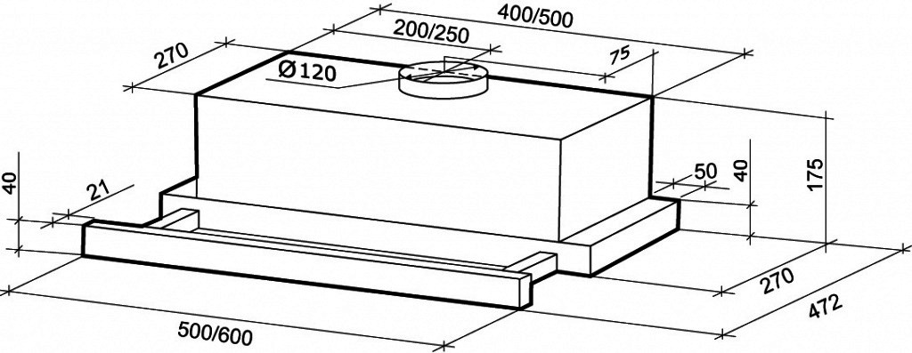 - Ширина вытяжки, см — 60