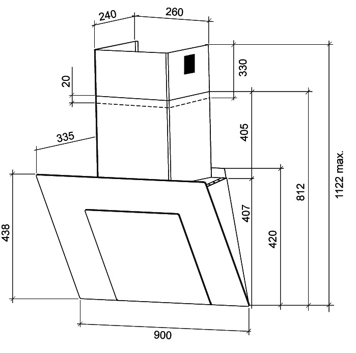- Тип вытяжки — наклонная
