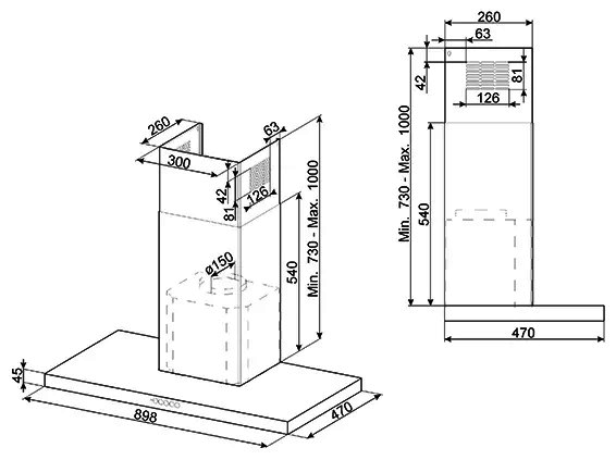 Характеристики вытяжки кухонной Smeg KICT90BL