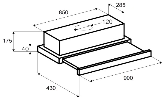 - Диаметр патрубка воздуховода, мм — 120
