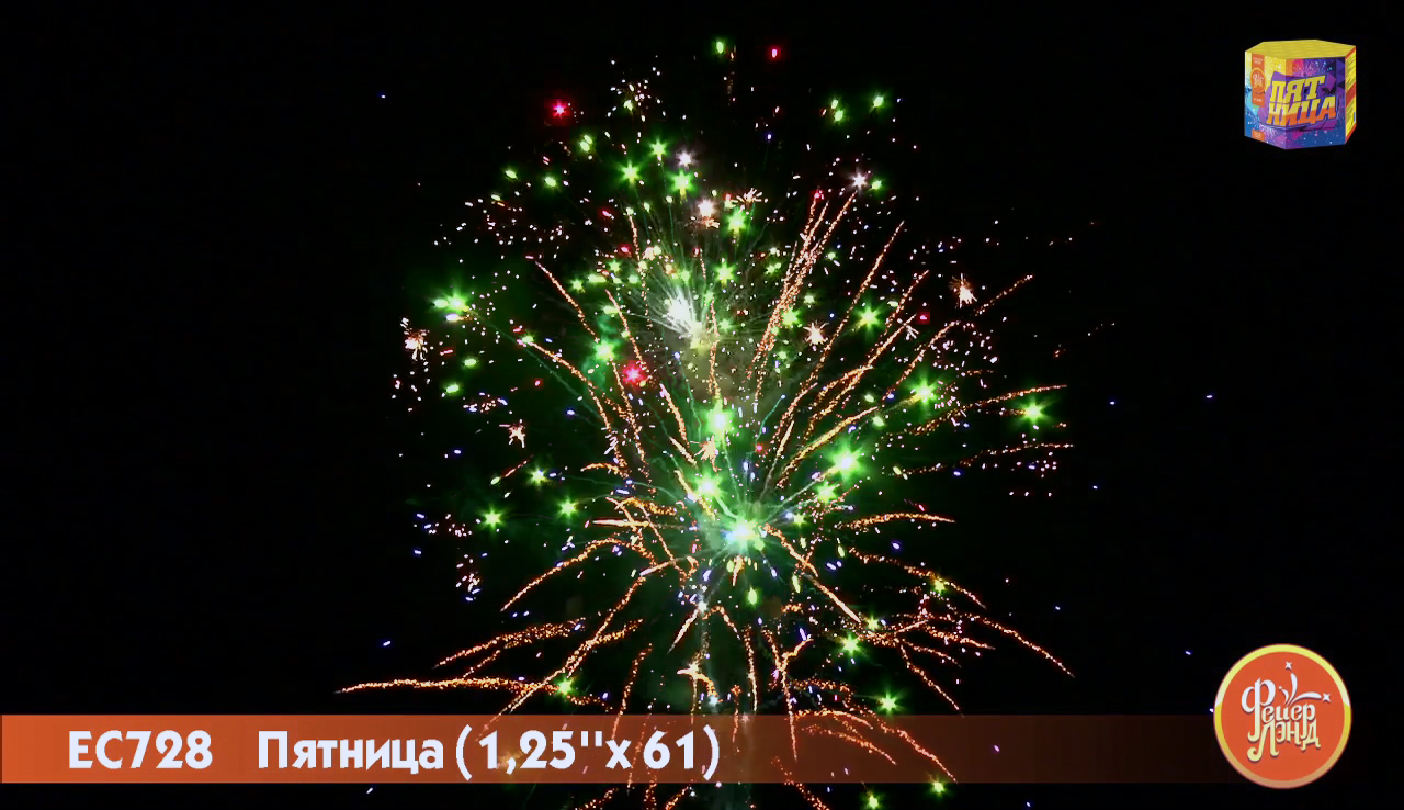 Ну, вот и шумная "Пятница" пришла, и как всегда, она обещает быть незабываемой. Проверим, чем удивит нас окончание рабочей недели и начало долгожданных пиротехнических выходных. Хотя с таким количеством предполагаемых эффектов, просидеть можно и до субботы! Небесно-голубые выстрелы, напоминающие крупное извержение фонтана переходит в множество огненных тонких правильных стрел и синих, малиновых огней, аналогичного цвета сфер и перламутровых трещащих облаков искр. Несколько одновременных выстрелов перламутровых комет и разноцветных огней, сфер синих и зеленых звезд создает объёмную картинку, переходящую в трещащие россыпи искр. Тонкие и длинные кометы медного оттенка окружили себя синими и зелеными камнями и не стесняются показать свою красоту! Языки рыжего пиротехнического пламени комет - незабываемое зрелище! С таким салютом любой день станет шумной и разгульной пятницей!