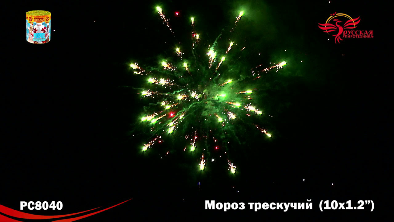 Характеристики батареи салютов Русская пиротехника МОРОЗ ТРЕСКУЧИЙ РС8040