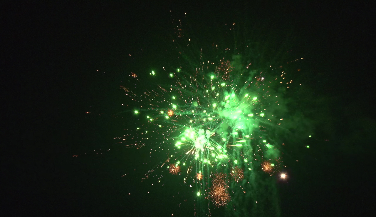 - Красные, зеленые и трещащие разлетающиеся огни.