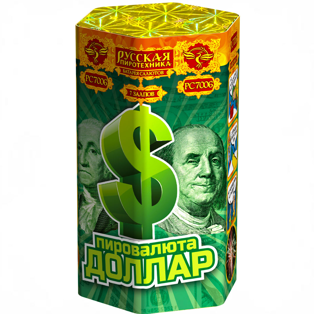 Описание батареи салютов Русская пиротехника ПИРОВАЛЮТА ДОЛЛАР РС7006