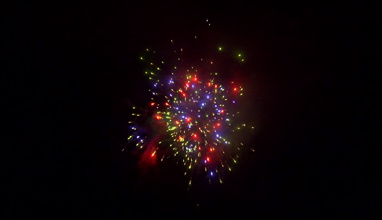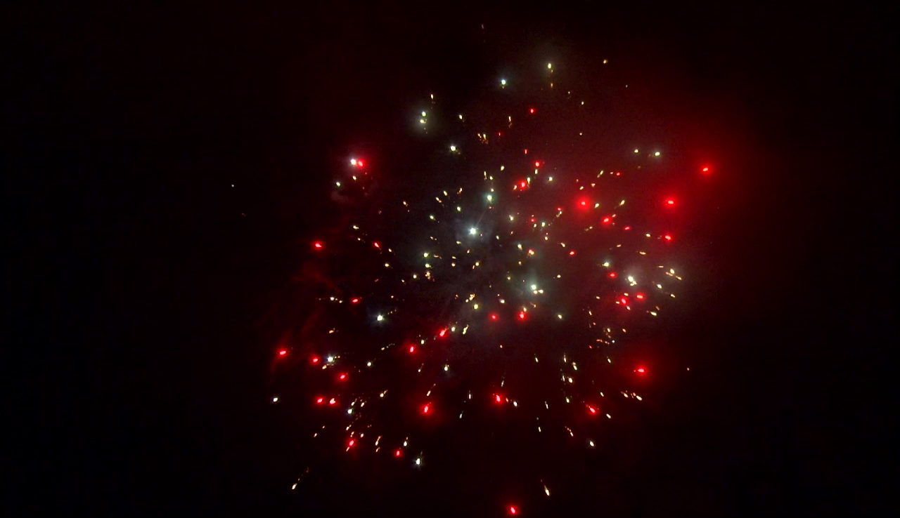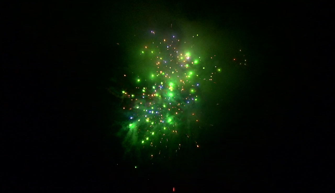 Магические серебряные и золотые ниспадающие нити смешаются с красными и зелеными звездами, превращая небо в сверкающий купол, на котором будут расцветать пышные сферы красных, синих и фиолетовых мерцающих пионов с изумрудными листьями из звезд. Еще более радостное ощущение от фейерверка подарит появление в небе веселых, сверкающих золотом змеек со свистящим эффектом. Финальными залпами вспыхнут алые пионы в сверкающих синих и зеленых звездах, которые упадут на землю, а напоследок радостно засверкает в небе трещащий дождь из тысячи маленьких звездочек.