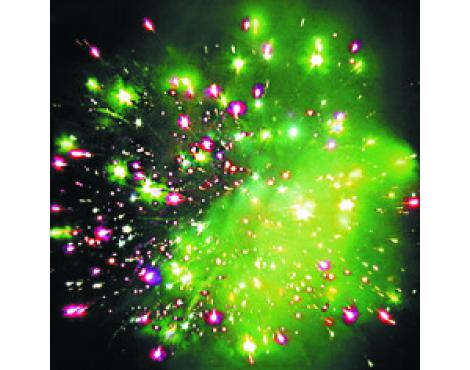 4. Красочная концовка: Вертушка разрывается облаком трещащих разрывов (трещащая хризантема). (22-28 сек., до 35 м)