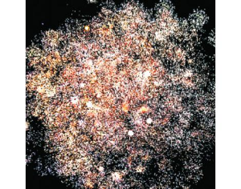 1. Красно-синяя сфера (пион) и белое мерцание.