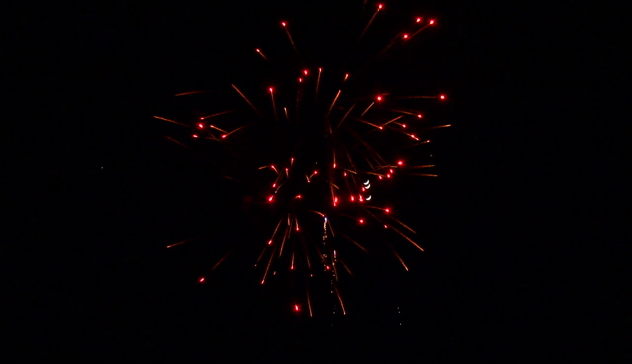 - Сфера золотых хвостов с переходом в красные звезды (цветная хризантема).