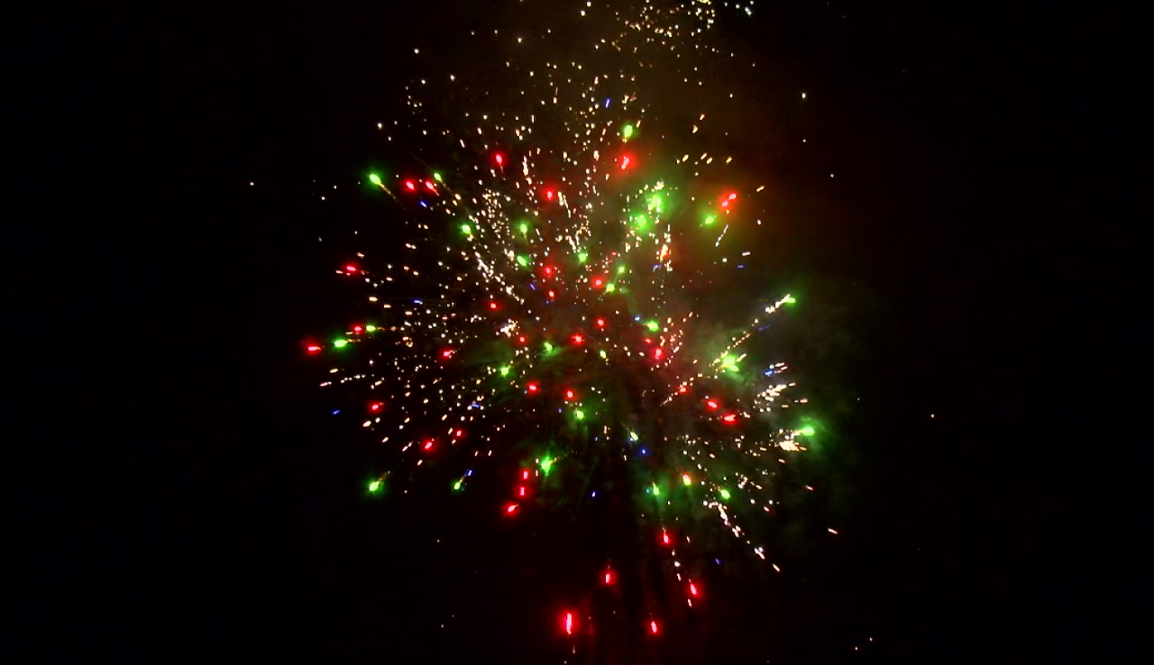 - Зелено-сине-красная сфера (пион) и облако треска (трещащая хризантема).