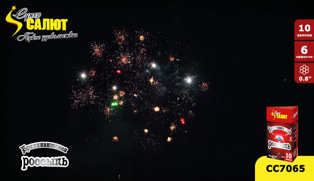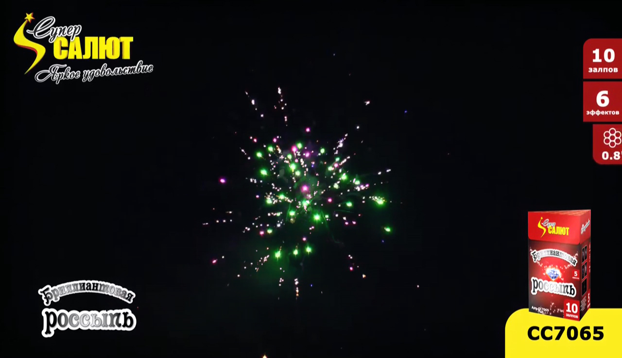 Характеристики батареи салютов СуперСалют Бриллиантовая россыпь СС7065