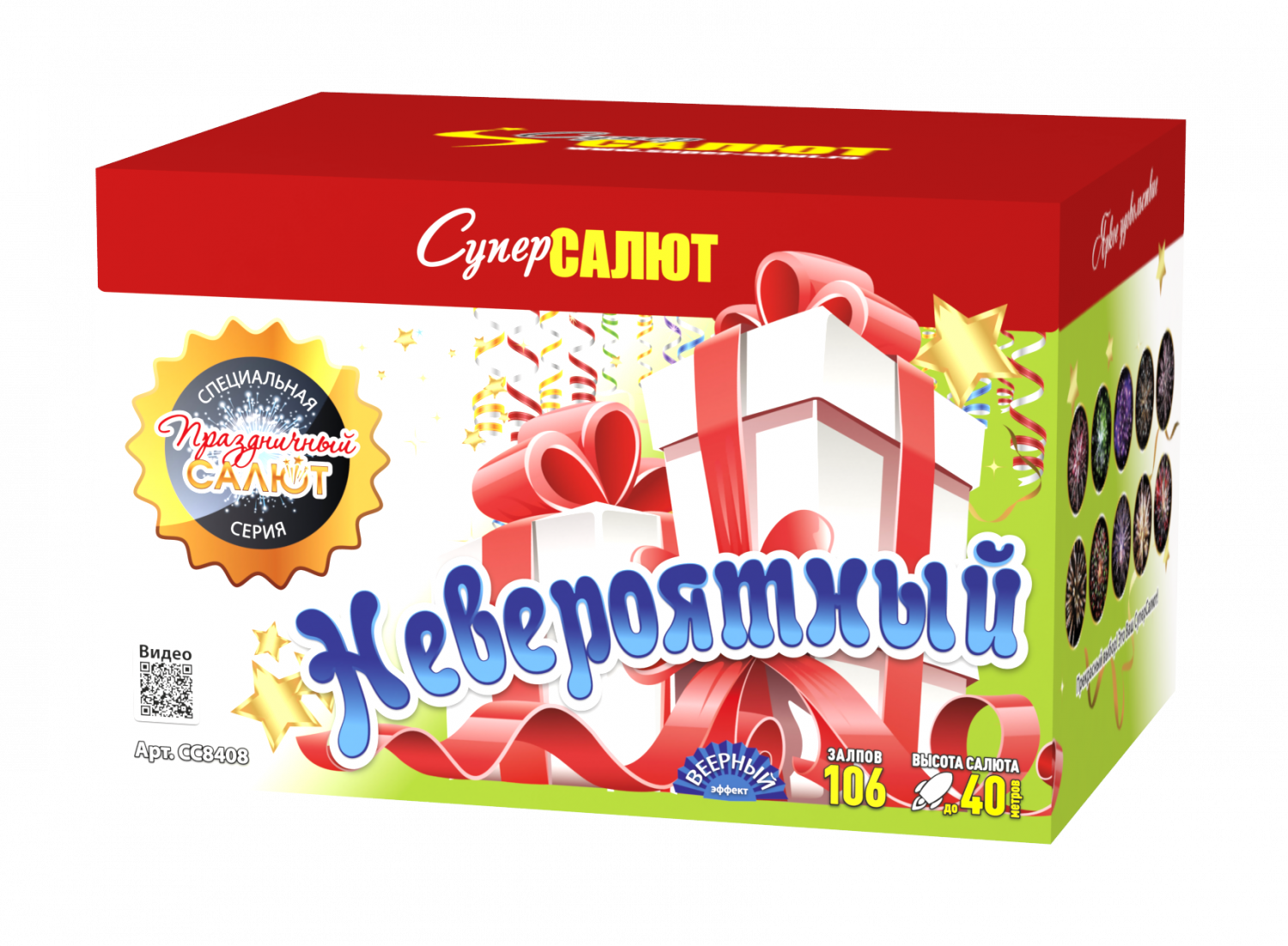 Характеристики батареи салютов СуперСалют Невероятный СС8408