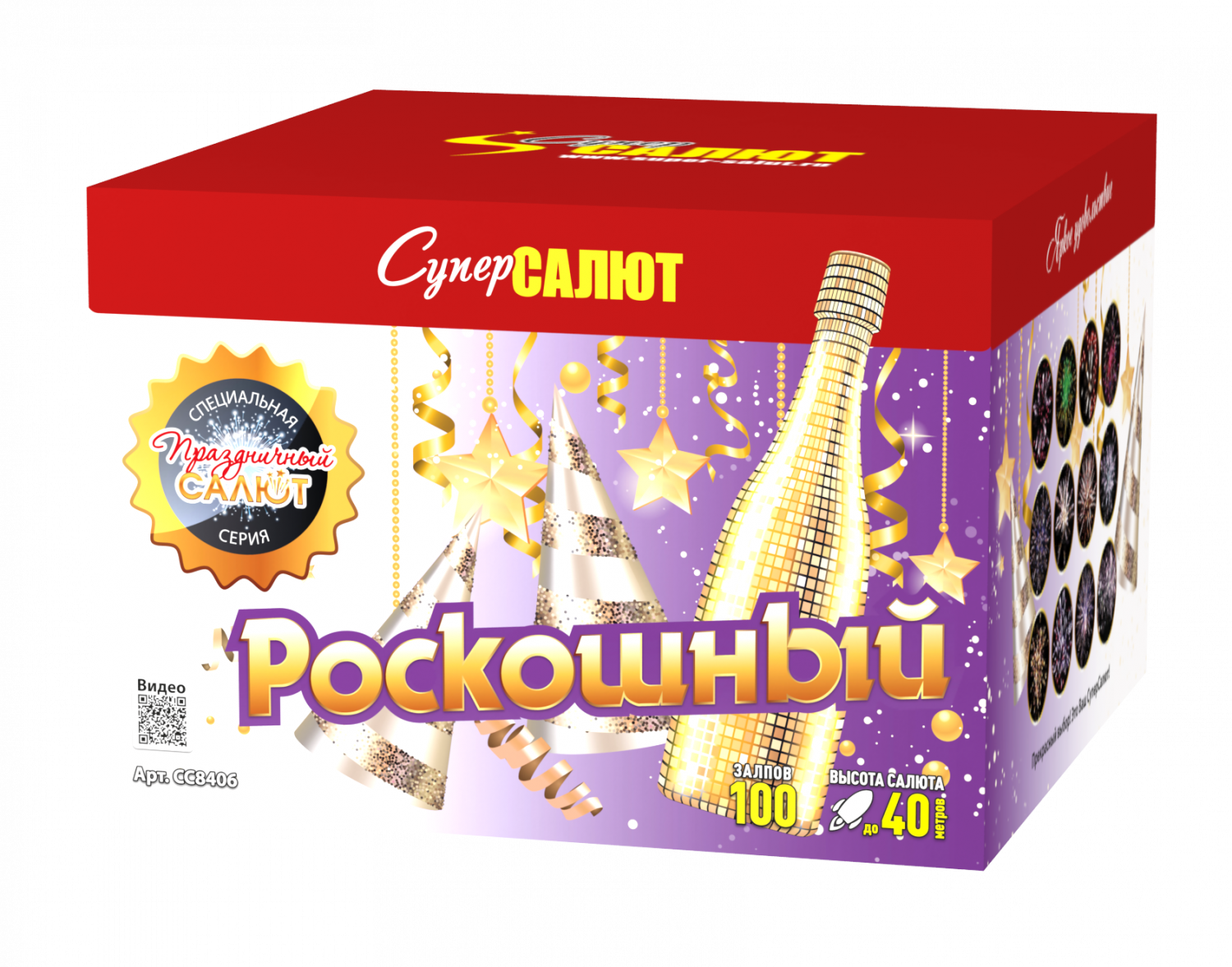 Характеристики батареи салютов СуперСалют Роскошный СС8406