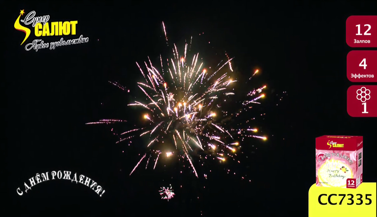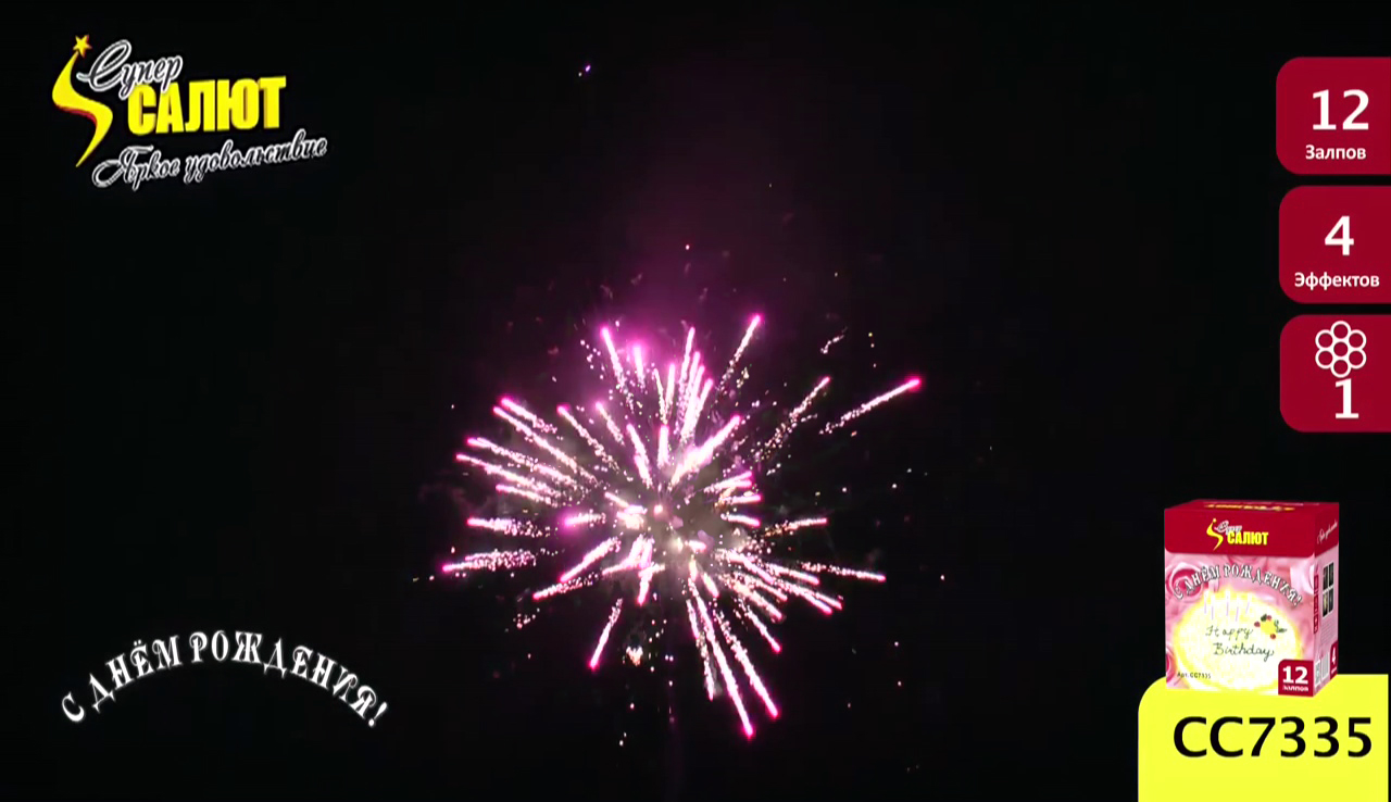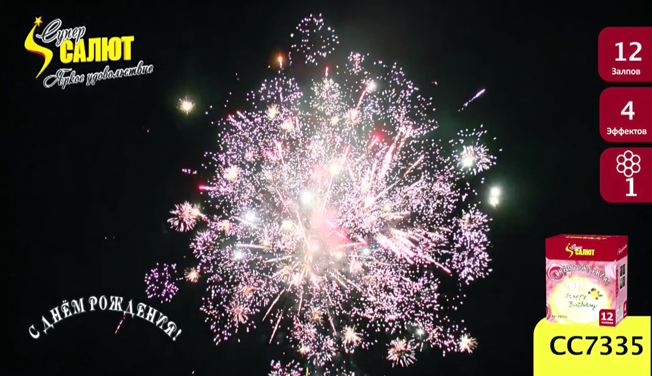 Описание батареи салютов СуперСалют С Днем Рождения СС7335