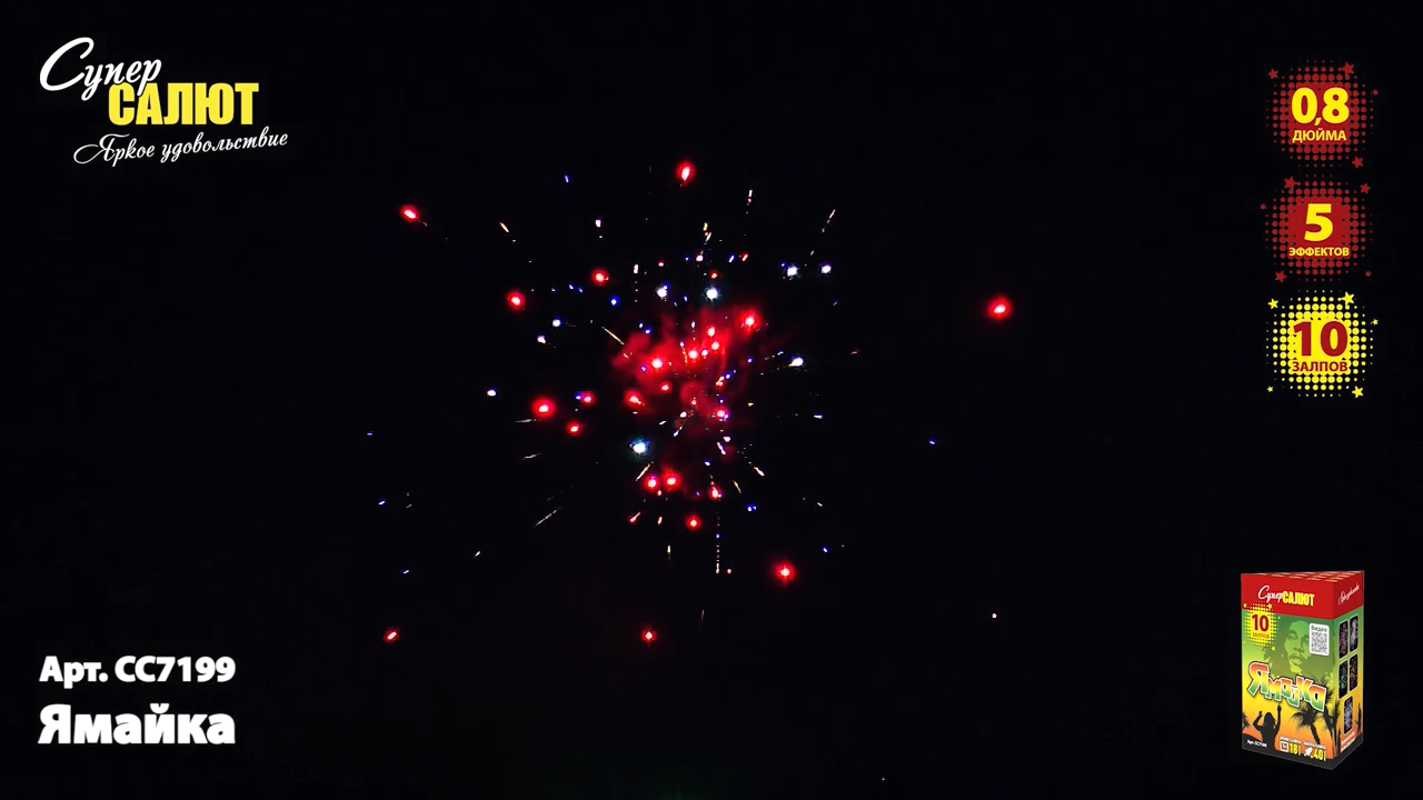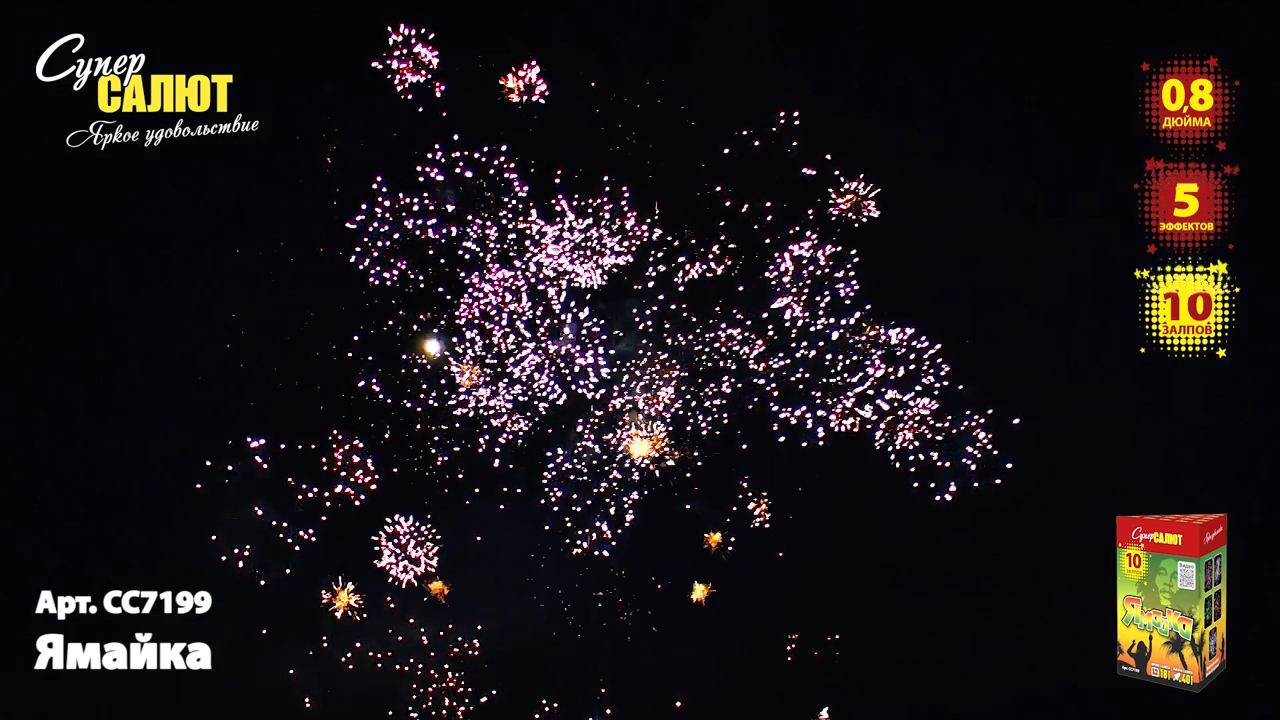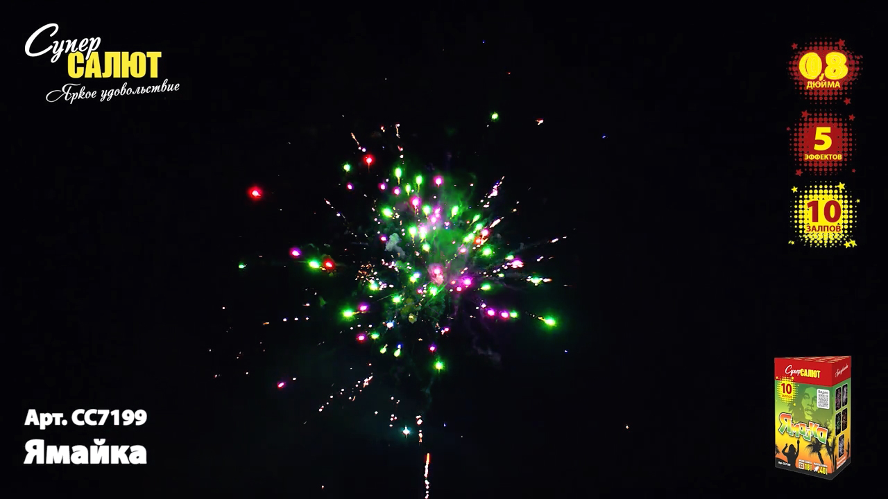 Характеристики батареи салютов СуперСалют Ямайка СС7199