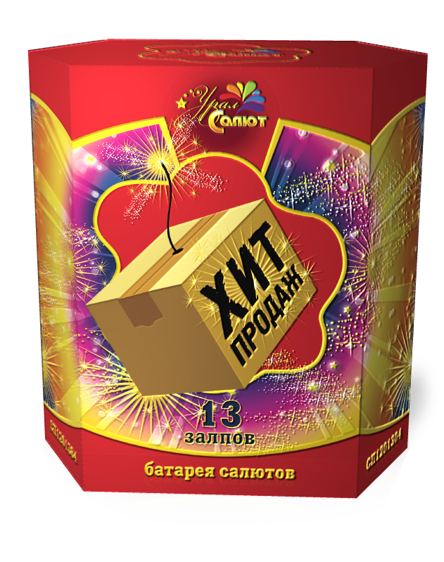 Фейерверк с «говорящим» именем «Хит продаж» полностью оправдывает свое название. Она заслужил признание у своих покупателей за удивительную красоту и универсальность. Фейерверк состоит из тринадцати залпов: рубиновая комета с рубиновой раскрывающейся пальмой с золотистым и потрескивающим дождем, изумрудная комета с изумрудной расцветающей пальмой с золотистым потрескивающим дождем, серебристая комета с серебристой раскрывающейся пальмой с золотистым потрескивающим дождем.
