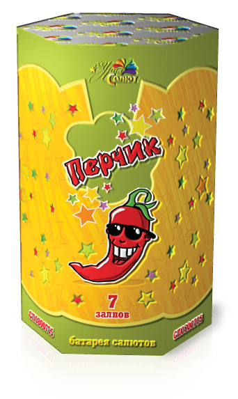 Фейерверк с интригующим названием «Перчик» не оставит вас равнодушными! Этот веселый салют состоит из семи залпов с повторяющимися эффектами: рубиново-красная волна, мерцающая белым, голубая жемчужина с белым мерцанием и потрескиванием, и в финале – разноцветные хризантемы, рассыпающиеся блестками. Он будет оригинальным подарком на любое торжество и приятно удивит всех гостей и участников своими волшебными красками.