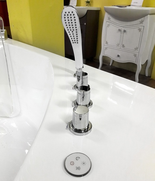 - Особенности — смеситель в комплекте, подголовник