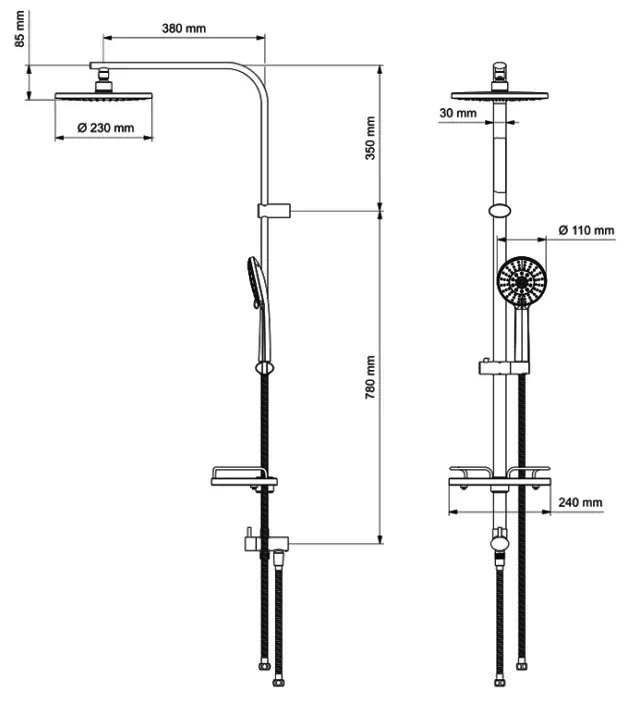 - Высота стойки для душа, мм — 1 150