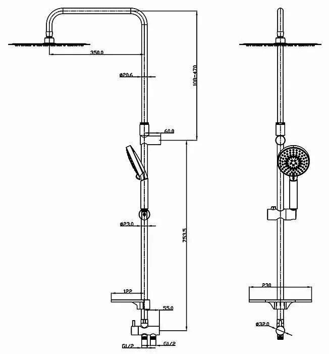 - Высота стойки для душа, мм — 1 223