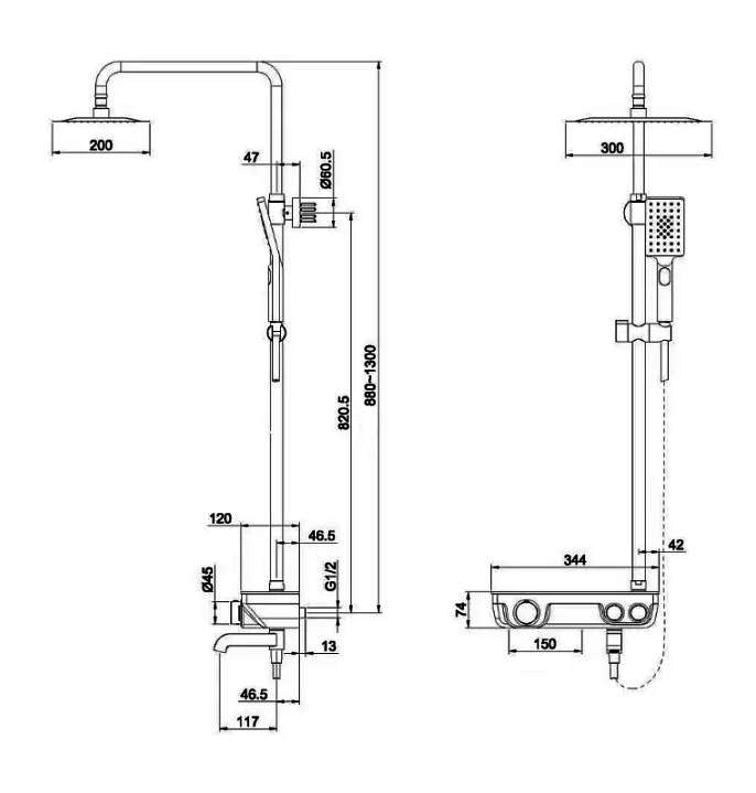 - Высота стойки для душа, мм — 1 300