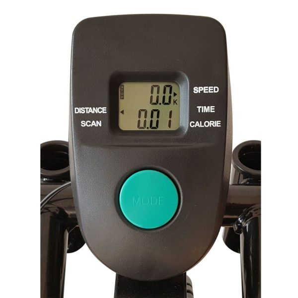 Среднегабаритный эллиптический тренажер для домашнего использования. Сиденье на данной модели позволяет заниматься как на велотренажере, регулируется по высоте. Тренажер имеет ременную систему нагружения с ручной регулировкой с помощью рукоятки на корпусе тренажера - чем сильнее затянут ремень, тем тяжелее крутить педали. Консоль с LCD-экраном отображает основные параметры тренировки, питание от 2 батареек тип АА (входят в комплект). Большие педали с нескользящим покрытием и бортиком по краям. Бренд, производитель DFC Тип домашний с передним расположением маховика Система нагружения ременная Количество уровней нагрузки бесступенчатая Регулировка нагрузки механическая Масса маховика 5 кг Максимальный вес пользователя 100 кг Длина шага 29 см Изменение угла наклона нет Педали широкие, удлиненные, с рифленым покрытием Педальный узел однокомпонентный шатун Сиденье широкое, с регулировкой по высоте Измерение пульса нет Нагрудный кардиопояс DFC W117 (опция, приобретается отдельно) Дисплей монохромный LCD с подсветкой Показания консоли скан, время, расстояние, скорость, калории Язык интерфейса английский Количество программ нет Держатель для бутылки нет Транспортировочные ролики есть Компенсаторы неровностей пола нет Размер в рабочем положении 93 х 67 х 163 см Питание консоли 2 батарейки тип АА