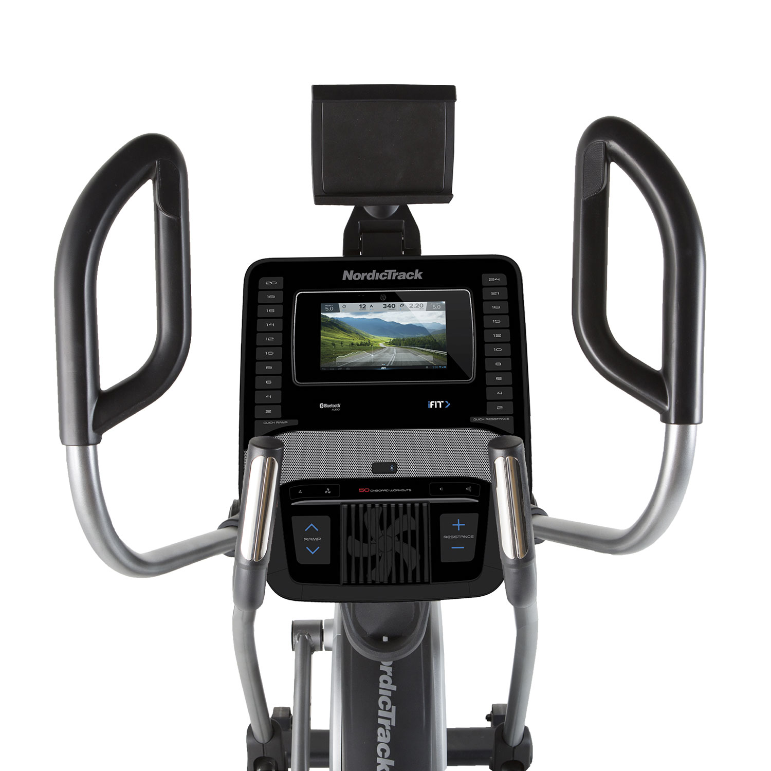 NordicTrack серии Commercial идеально подходит для тех, кто серьезно относится к своим фитнесс - тренировкам. Он специально сконструирован для результативных, стабильных и комфортных занятий. Встроенный функционал модели Commercial C12.9 NEW позволит настроить параметры тренажары для достижения конкретных результатов. С помощью кнопок управления вы можете быстро отрегулировать угол наклона, длину шага или сопротивление. Фирменная система вентиляции AutoBreeze™ адаптирует скорость вентилятора к интенсивности тренировки. Контролировать пульс вы можете с помощью встроенных датчиков Dual EKG™, или нагрудного кардиопояса Bluetooth® Smart, который входит в комплект поставки.
