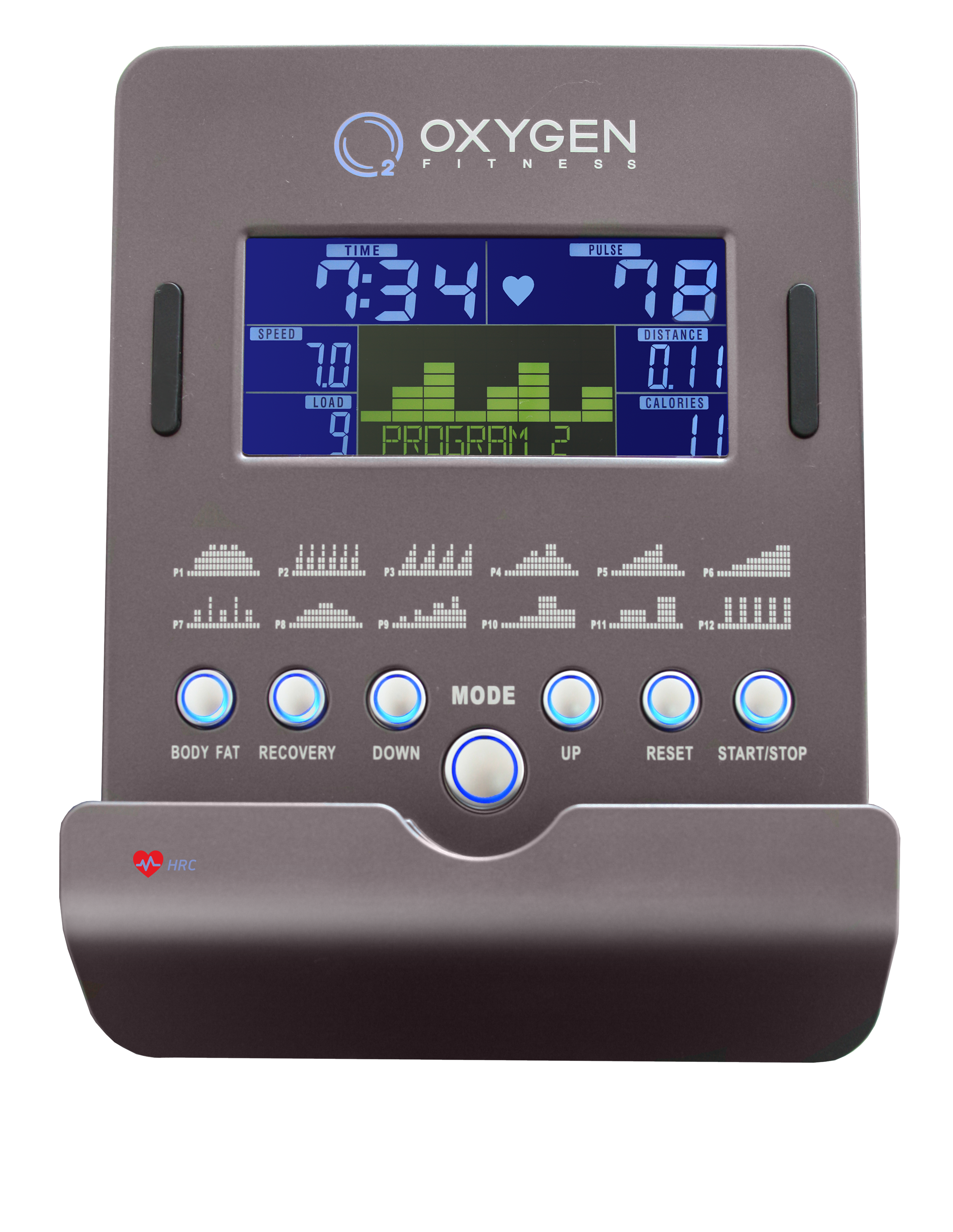 OXYGEN GX-65FD HRC+ также оснащен эргонометрической функцией, позволяющей контролировать нагрузку на организм: можно выставить определенное постоянное значение нагрузки, не зависящее от скорости кручения педалей. С помощью системы Body Fat можно проанализировать процентное соотношения массы мышц и жировых отложений, получить сведения об общем состоянии тела. Наконец, программа Recovery даст информацию о необходимом времени и возможностях организма для восстановления после тренировки.