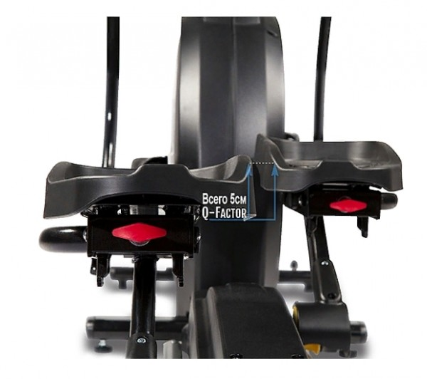 В модели Xterra FS 5.9e для обеспечения непревзойденного удобства, используются широкие комфортные педали с амортизирующим эффектом, благодаря которым, пользователь может ставить ноги в удобное положение. Данный тренажер предлагает максимальную вариативность в выборе комфортного положения на тренажере. Регулируемое положение педалей и наклон рампы сделает акцент в тренировки на те группы мышц, которые в ходе обычного использования могут быть не активно задействованы. Поручни Multi Position — благодаря такой форме пользователь получит больше возможностей выбора комфортного местоположения рук.