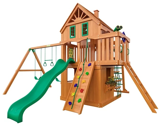 Дети могут резвиться в песочнице, качаться на качелях, кататься на горке, взбираться по скалодрому с разноцветными камнями, одновременно изучая цвета. Мальчишки могут поиграть в «супер-героев», выполняя акробатические упражнения с помощью кольцевой трапеции. Из балкона можно устроить палубу или наблюдательный пункт. Для этого имеются дополнительные аксессуары, которые предлагается заказать вместе с игровым комплексом.