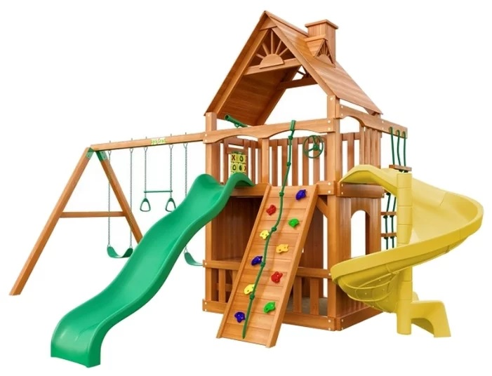 Детская игровая площадка «Шато 2 Sun» не позволит маленькому озорнику скучать. Такая конструкция просто необходима для энергичных детей. Она оборудована сразу двумя горками: волнообразной и спиралевидной. Они оснащены бортиками для полной безопасности ребёнка.